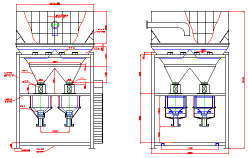 The bagging house is a floor structure. DCS bagging weigher is installed on the second floor of workshop. The slide chute is designed and installed on user's site according to the actual location.